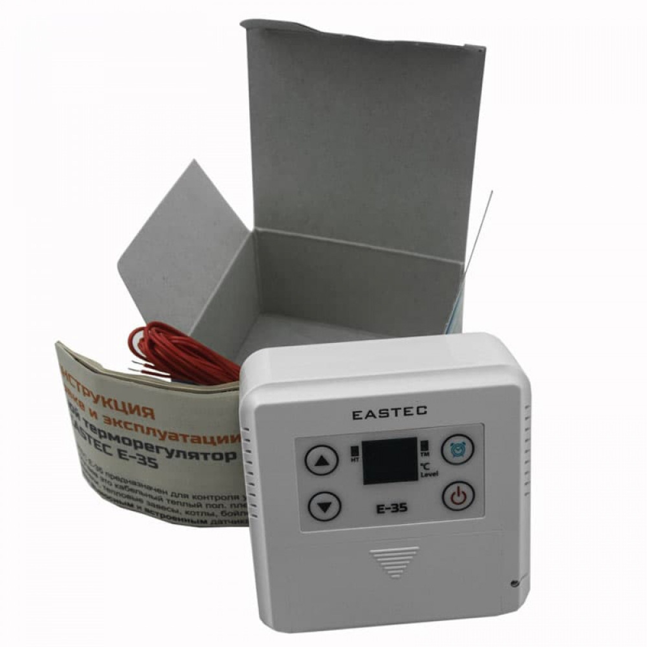 Накладной терморегулятор EASTEC E-35 предназначен для контроля уровня нагрева эл. приборов, таких как кабельный теплый пол, тепловые завесы, котлы, бойлеры и др. бытовые обогреватели. Цифровая индикация температуры, кнопочное управление. Сверх удобное ПЕРЕДНЕЕ подключение (электрические колодки расположены в передней части регулятора за защитной крышкой) Регулятор снабжен выносным высокочувствительным датчиком температуры (R=5кОм ) миниатюрных размеров, диаметр всего 4мм (!) Очень удобно использовать при монтаже пленочных теплых полов. А также дополнительным Датчиком ВОЗДУХА, расположенным в правой нижней части корпуса. Благодаря которому может работать по температуре воздуха. Таймер отключения (от 1 до 12 часов) время, через которое термостат выключится. В случае, если выносной датчик не подключен, то регулятор работает по временным интервалам (от 1 до 10 (1- 60) мин). Терморегулятор Eastec E-35 имеет защиту от перепадов напряжения сети 85-265 В, 50/60 Гц благодаря чему весьма актуален в частном жилом секторе. Также Е-35 оснащен защитой от сброса значений температуры при отключении питания. (При повторном включении автоматически выставляется последняя выставленная температура.)